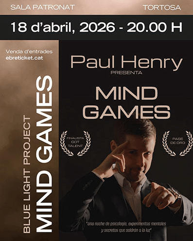 Arriba Mind Games a Tortosa: el mentalista Paul Henry, conegut per Got Talent España, presenta un espectacle únic ple de psicologia, misteri i experiments mentals.